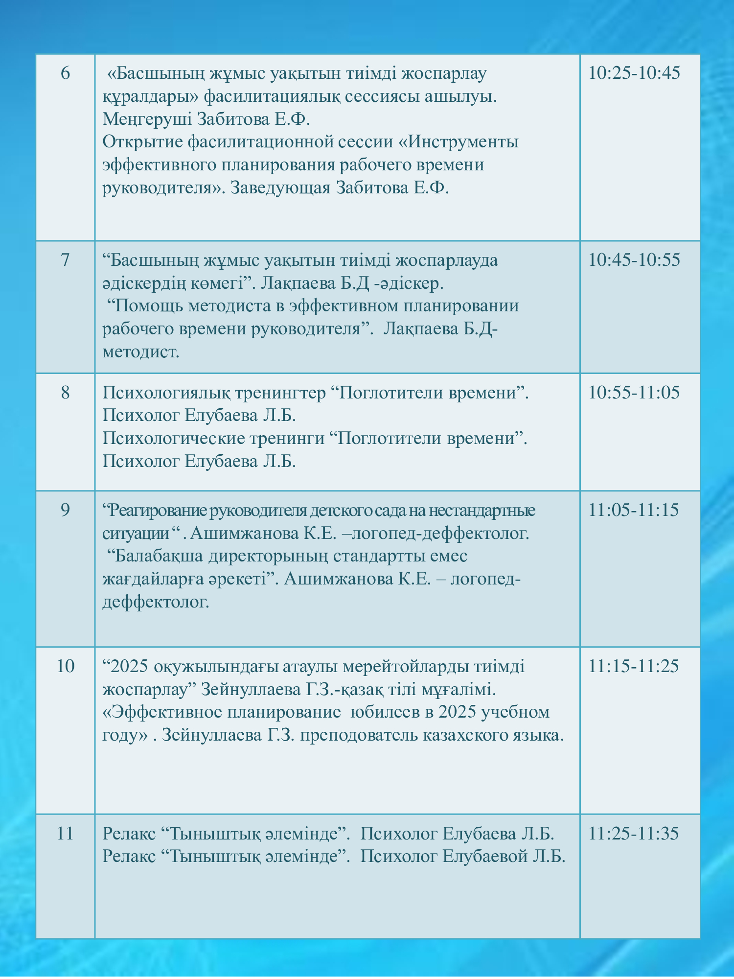 ГККП "Ясли сад №96" » Ақпарат » КМҚК "№96 бөбекжай-балабақшасы" «Басшының жұмыс уақытын тиімді жоспарлау құралдары» фасилитациялық сессиясы тақырыбындағы аудандық семинары